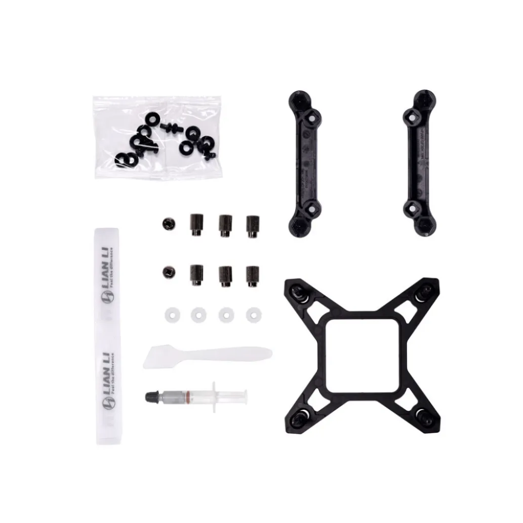 Komplet potrebuje vse potrebno za enostavno namestitev v računalniško ohišje. Kompatibilen je z Intel LGA 1700/1200/115X in AMD AM4/AM5 podnožji, omogoča namestitev vertikalno ali vodoravno na zgornji ali spodnji strani ohišja.