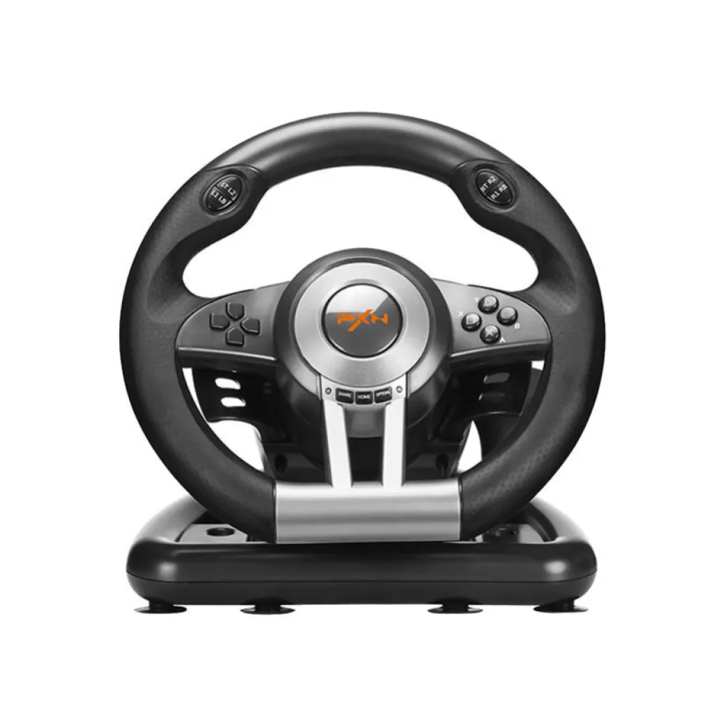 Volan PXN-V3 ima 180-stopinjsko območje vrtenja in vgrajeno prestavno ročico. Široka združljivost zagotavlja vsestranskost naprave, stabilen nosilec pa omogoča udobno uporabo. Volan ponuja 8 programabilnih gumbov. V kompletu prejmete tudi pedala.