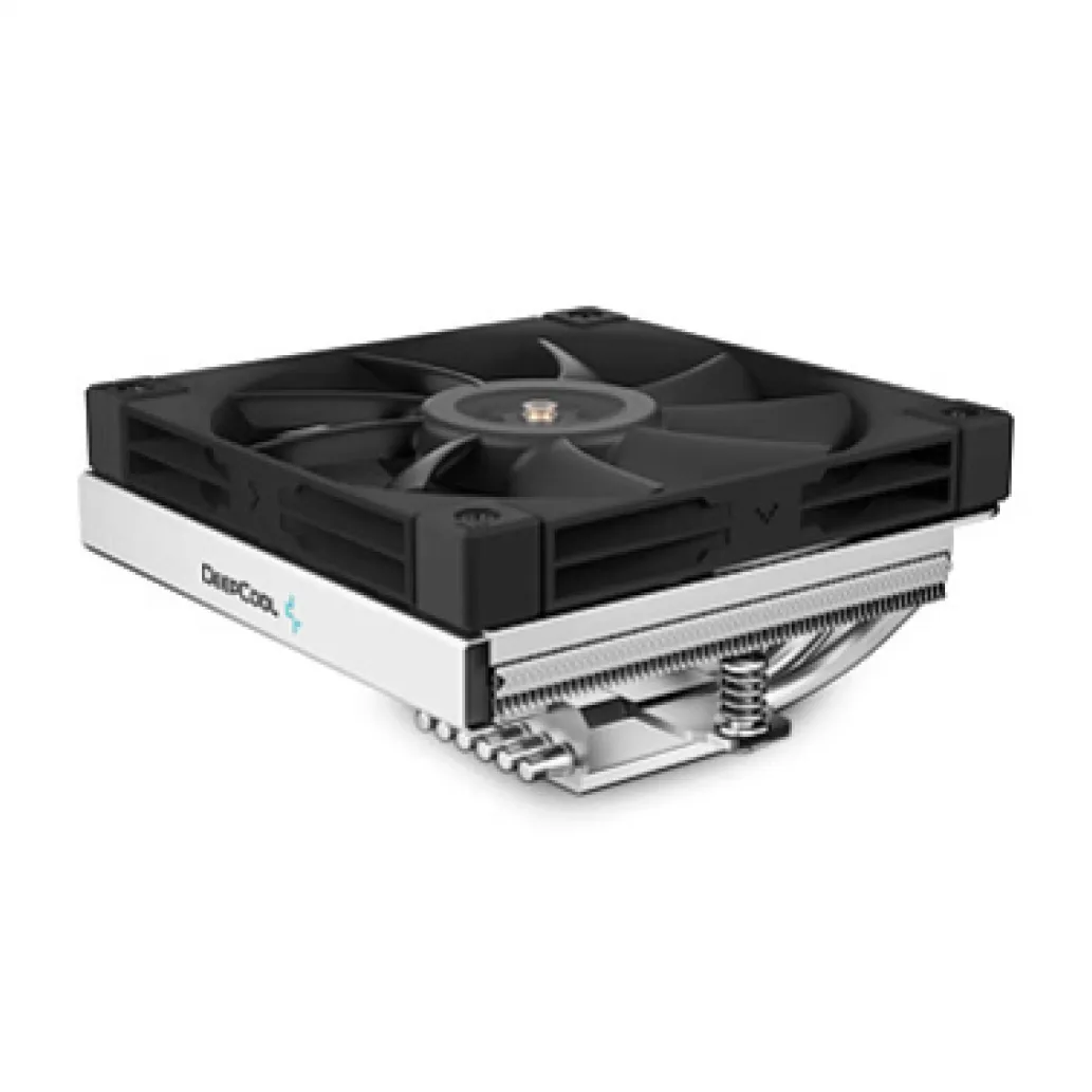 DeepCool AN600. Tip: Zračno hlajenje, Premer ventilatorja: 12 cm, Največji pretok zraka: 61,56 cfm, Največji zračni tlak: 1,97 mmH2O. Širina: 122 mm, globina: 120 mm, višina: 67 mm. Barva izdelka: aluminij, črna