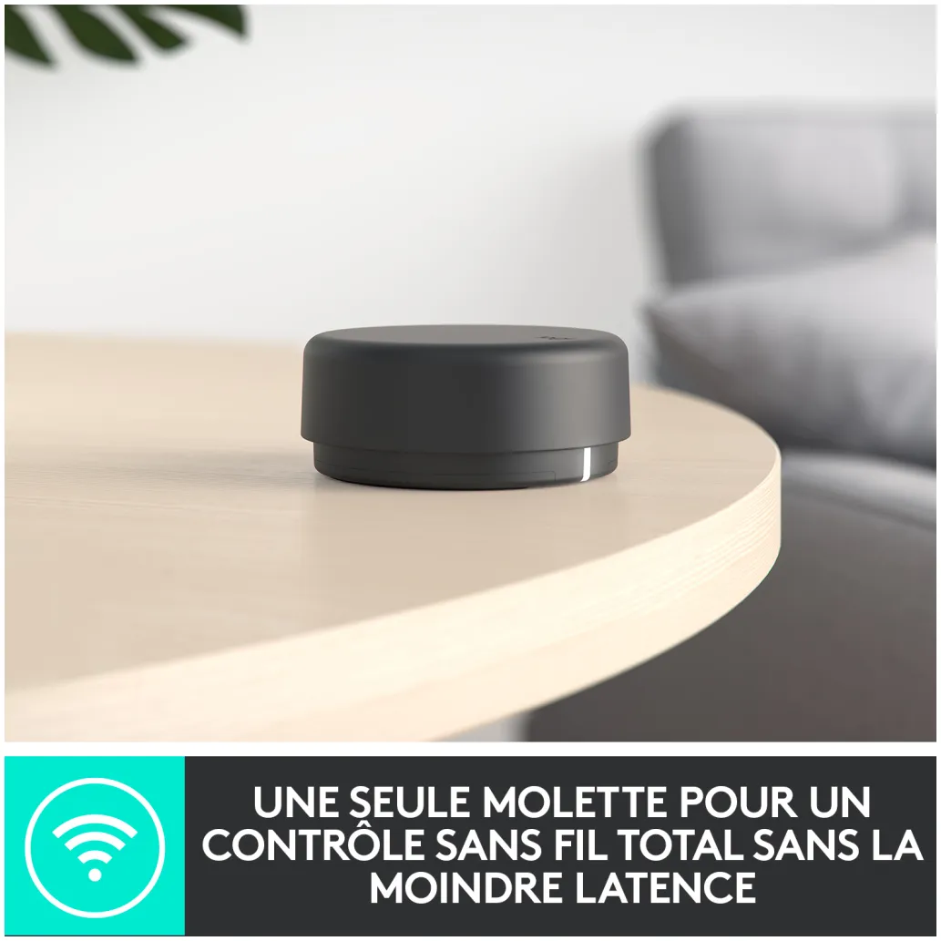 Brezžični nadzor tona z dosegom 30 metrov z jasnim vidnim poljem vam omogoča prilagajanje zvoka ne glede na to, kje v prostoru ste. Samo tapnite in zavrtite za predvajanje, premor in utišanje ter nadzor glasnosti in nizkih tonov. Tako preprosto je – sploh vam ni treba vstati s kavča.