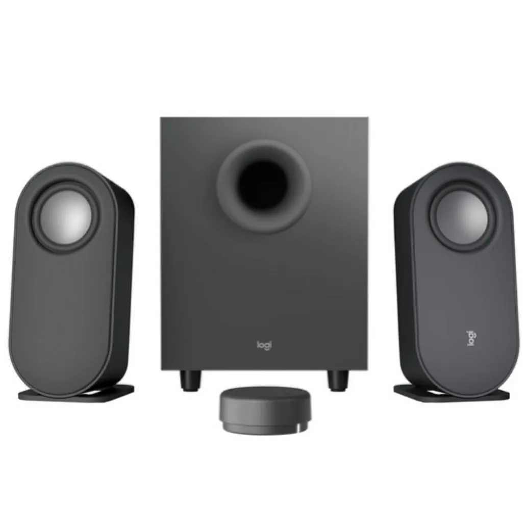 Impresiven zvok za vašo mizo z računalniškimi zvočniki Z407 Bluetooth. Strokovno nastavljen sistem zvočnikov 2.1 zagotavlja največjo moč 80 vatov in 40 vatov RMS. Izboljšajte svoj zvok z nizkotoncem, ki se spušča navzdol, in jasnost celotnega spektra z digitalno obdelavo signala. Elegantne ovalne satelitske zvočnike lahko postavite vodoravno ali navpično. Postavite jih tako, da ustrezajo vašemu delovnemu prostoru. Brezžični tonski krmilnik, ki podpira Bluetooth, vam omogoča popoln nadzor. Prilagodite nizke tone in glasnost, preskočite in začasno ustavite skladbe, ne da bi sploh vstali s kavča. Možna povezava preko Bluetooth, USB-A ali 3,5 mm vhodov.